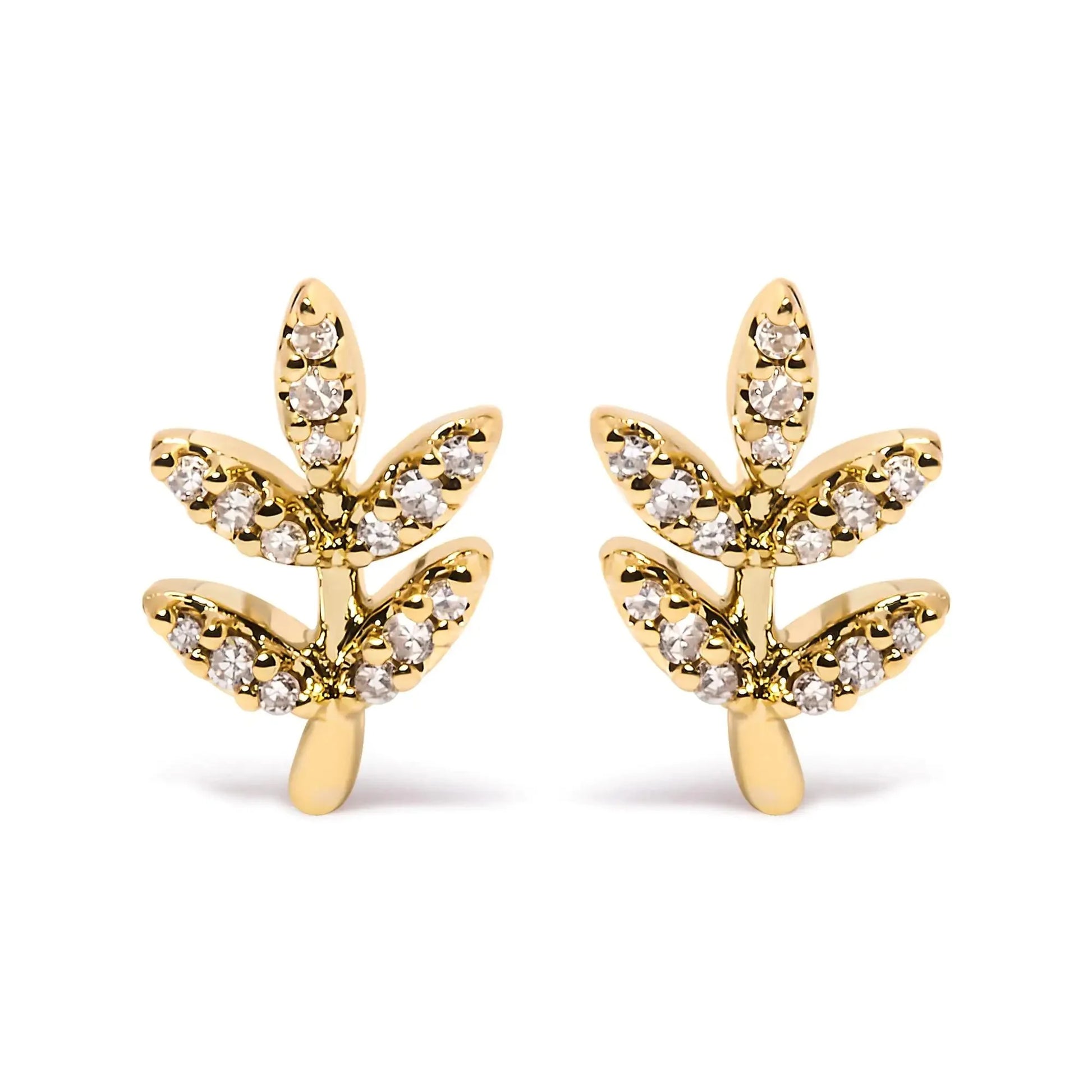 10K Yellow Gold 1/10 Cttw Diamond Accented Leaf and Branch Stud Earrings (H-I Color, I1-I2 Clarity)