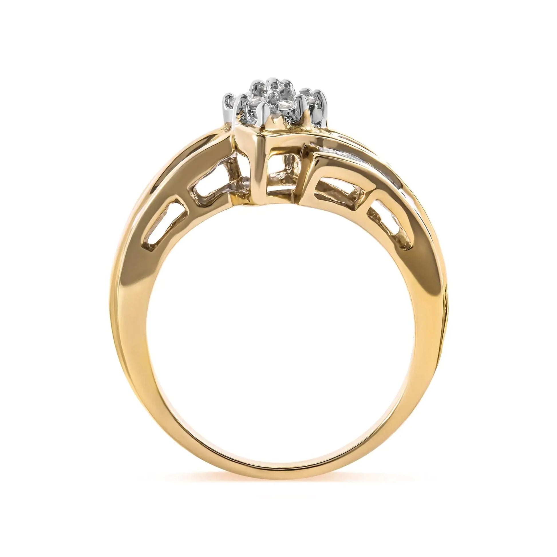10K Yellow Gold 1/2 Cttw Round And Baguette-cut Diamond Cluster Head and Channel Set Shank Ring (H-I Color, I1-I2 Clarity)