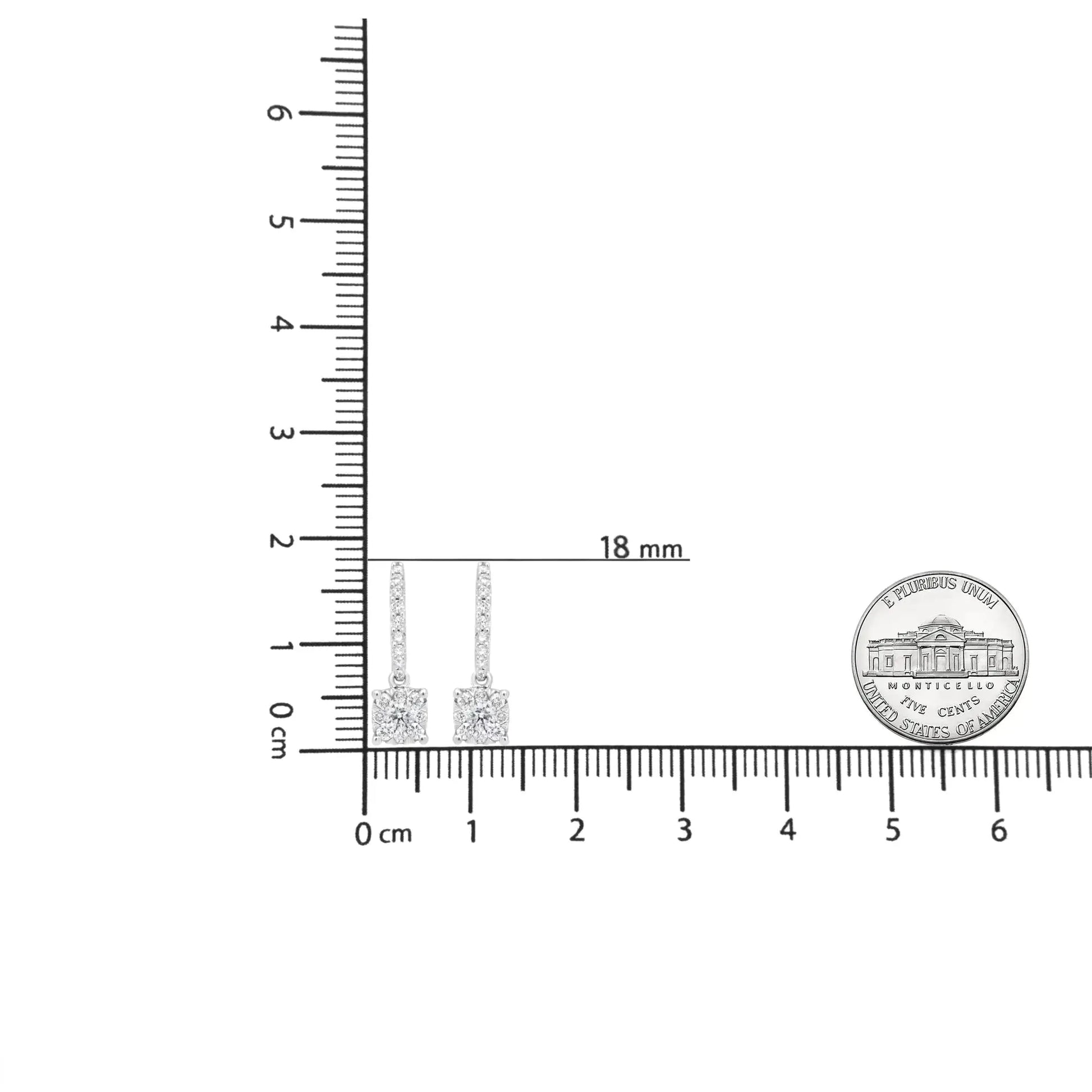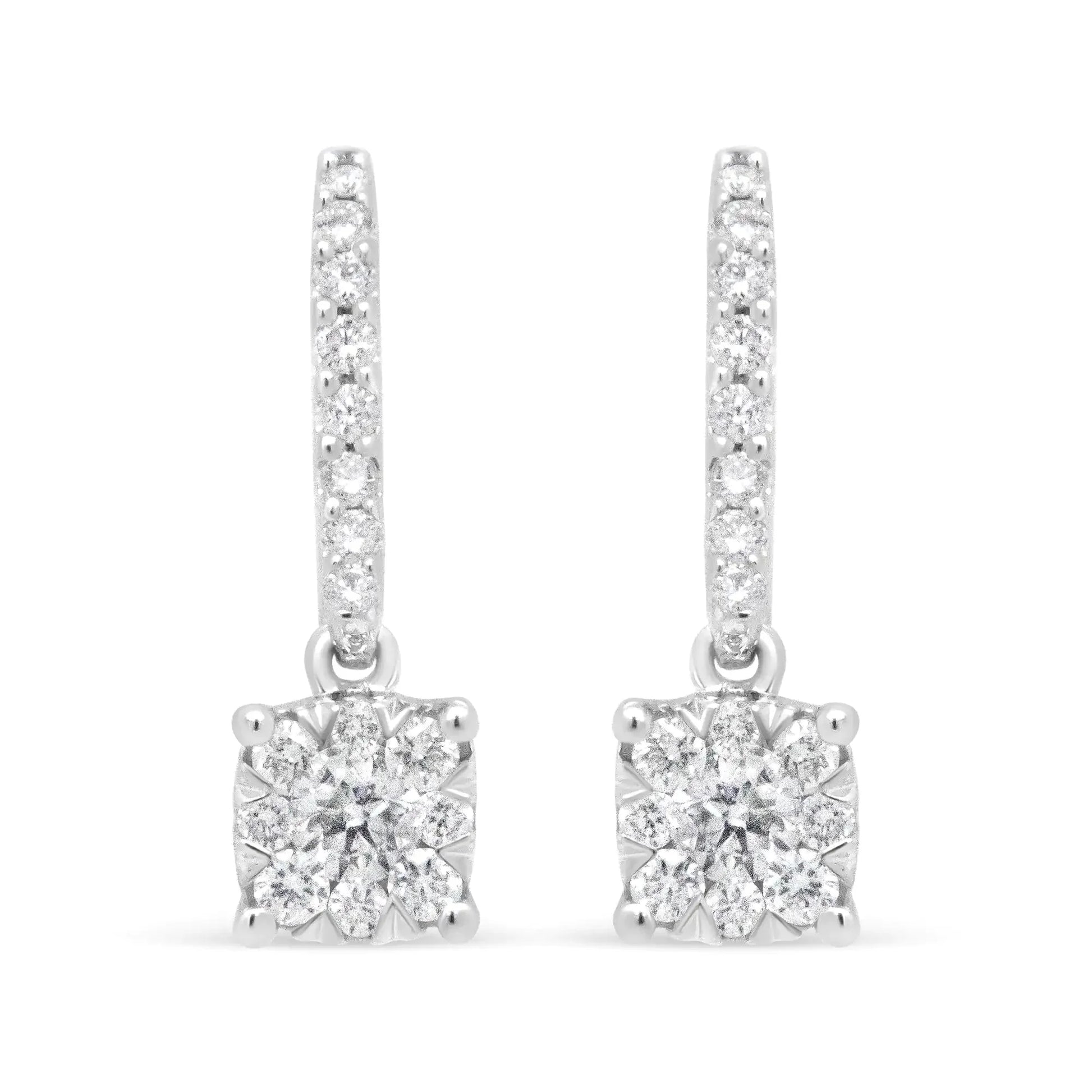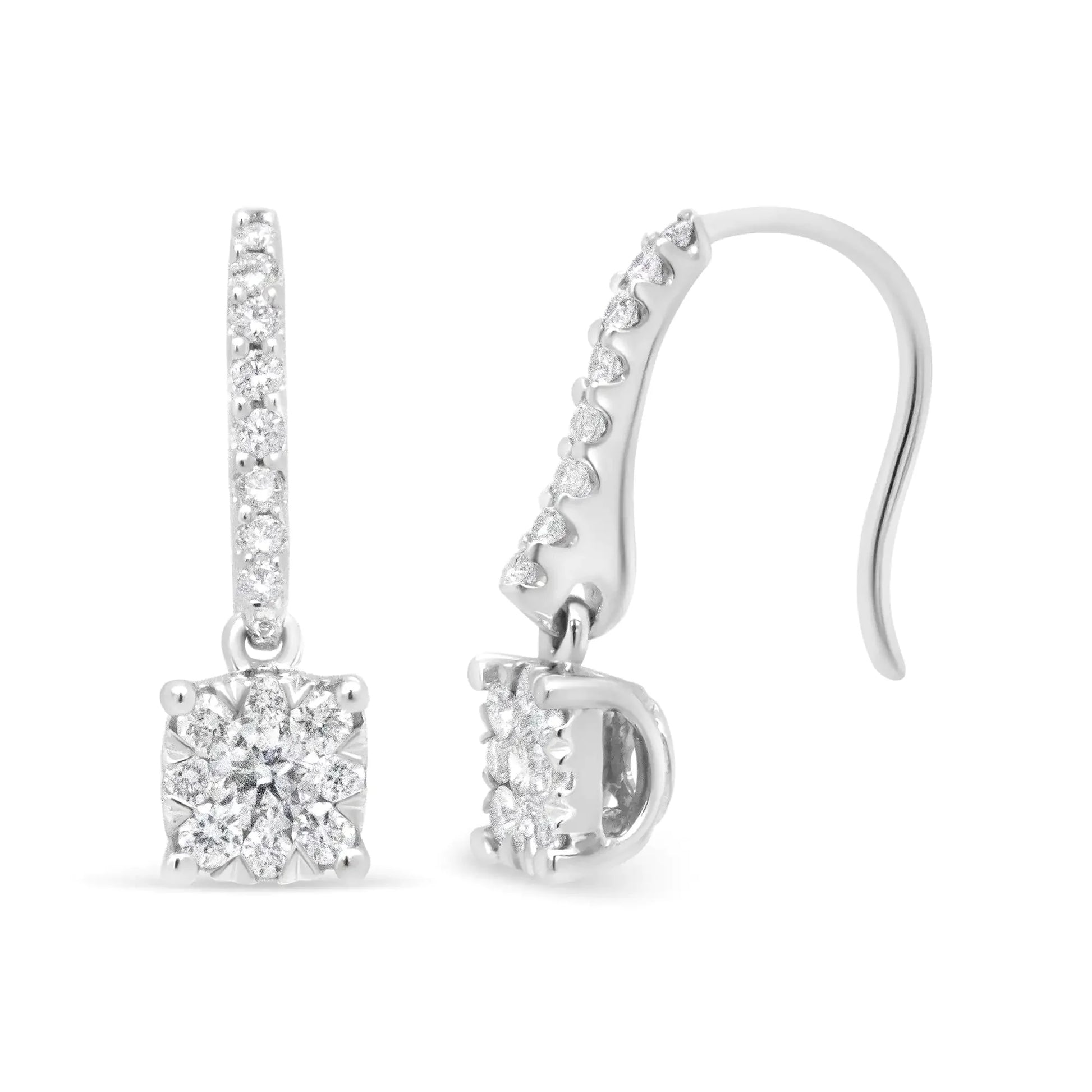 14K White 1/2 Cttw Round Diamond Halo Dangle Hook Earring - (H-I Color, SI2-I1 Clarity)