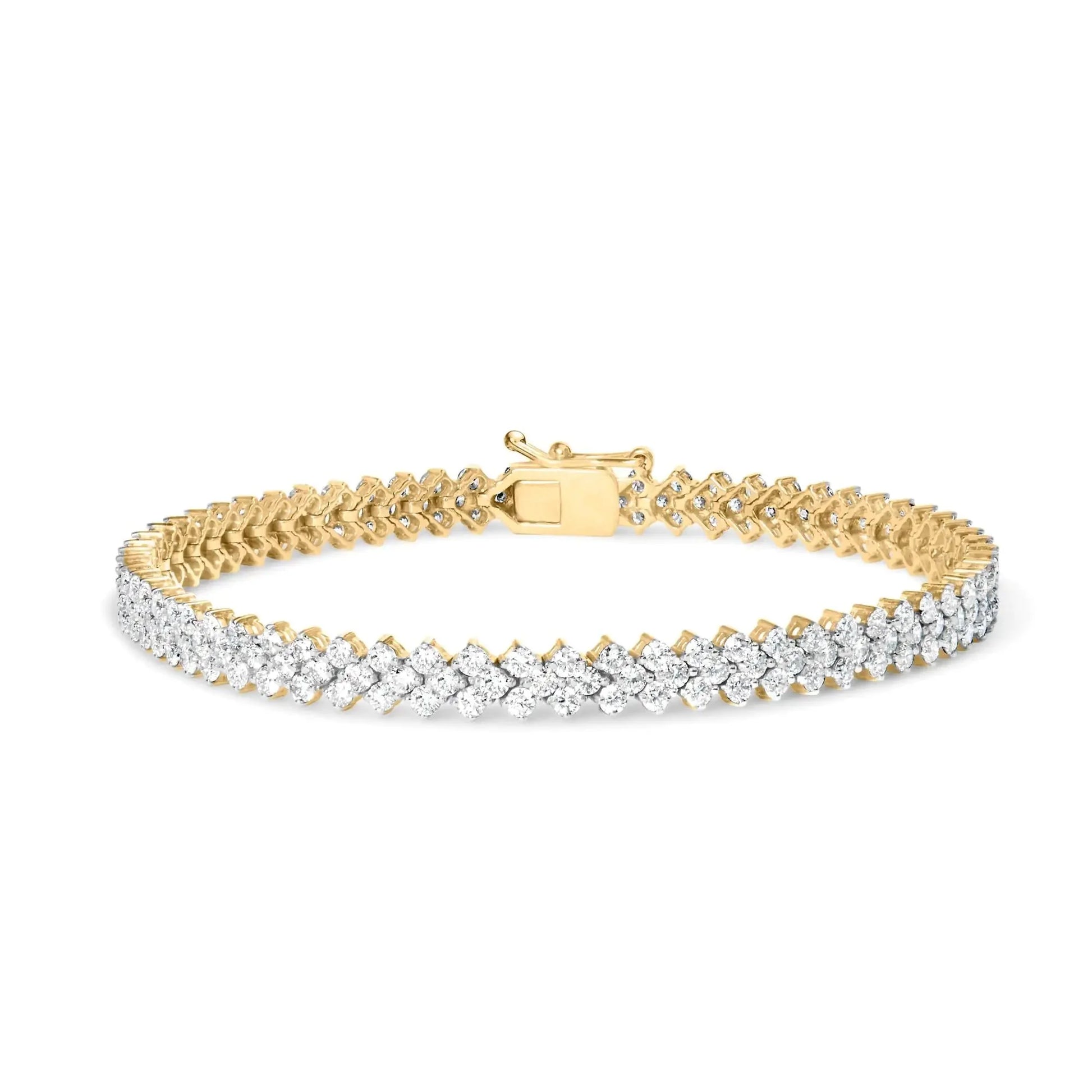 14K Yellow Gold 4.00 Cttw Diamond Trio Cluster Link Bracelet (H-I Color, I1-I2 Clarity) - 7"