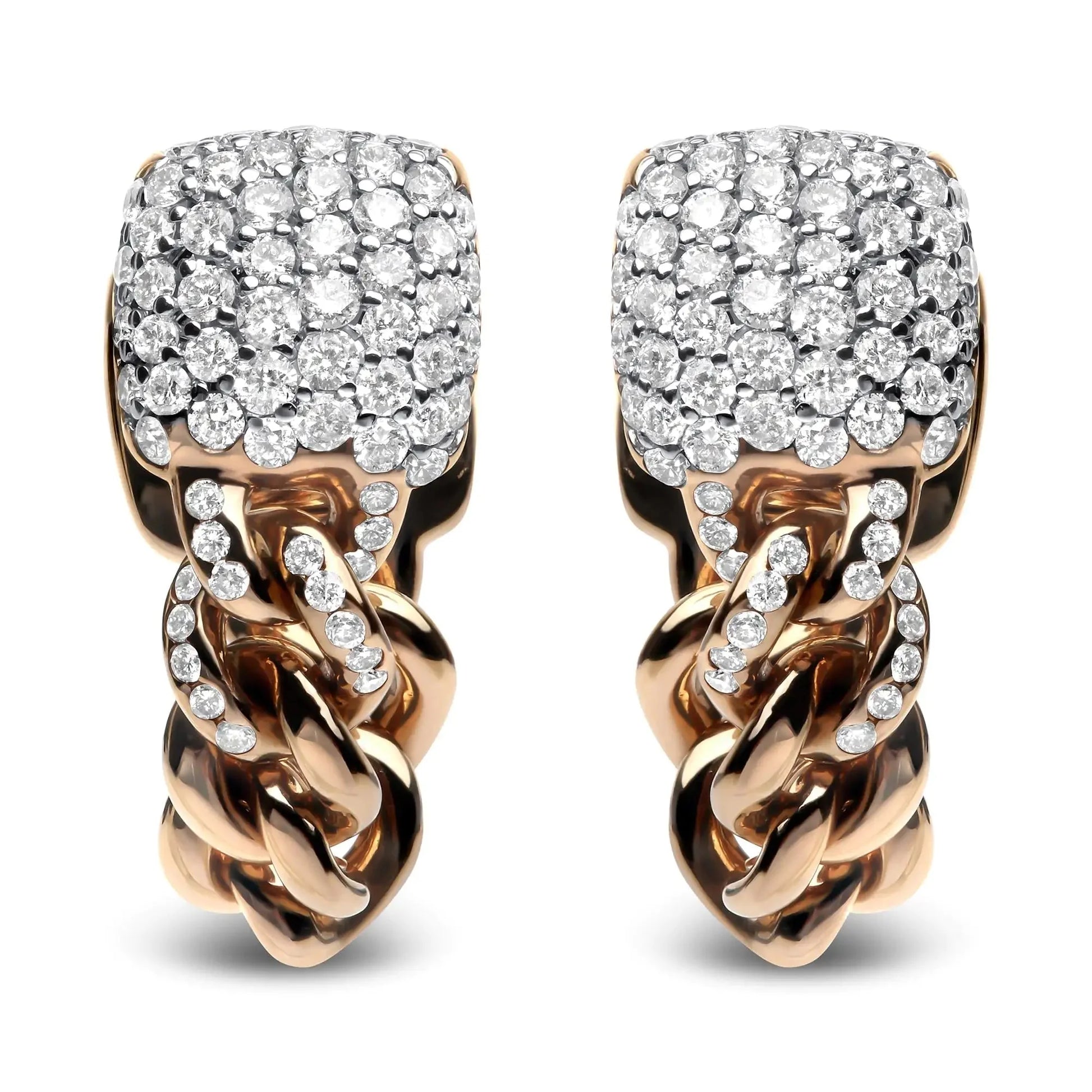 18K Rose Gold 3/4 Cttw Round Diamond Pave Cuban Chain Huggie Earrings (G-H Color, SI1-SI2 Clarity)