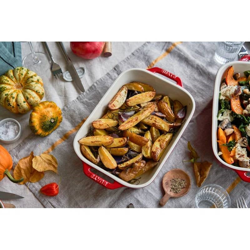 - 2 Piece Ceramic Stoneware Baking Dish Set in Cherry Red / Ivory
