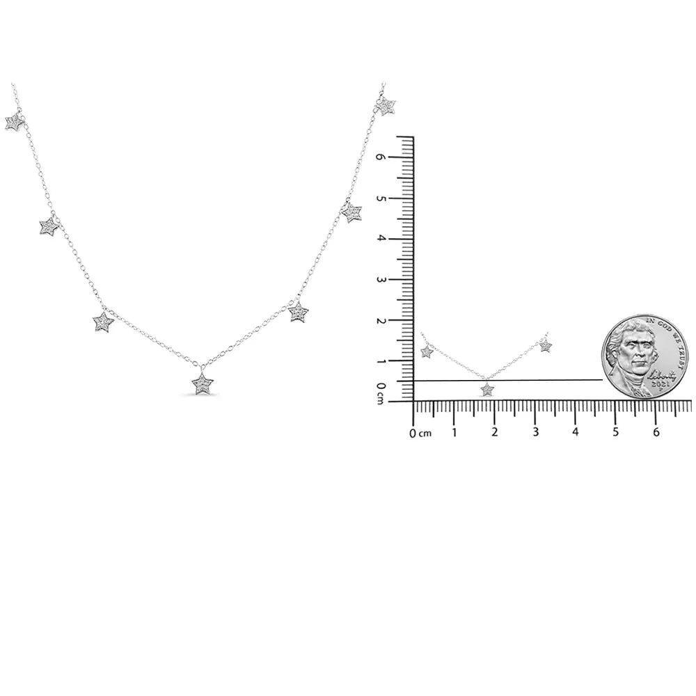 .925 Sterling Silver 1/3 Cttw Diamond Multi-Star Dangle Droplet Charm Pendant 18" Necklace (I1-I2 Clarity, H-I Color)