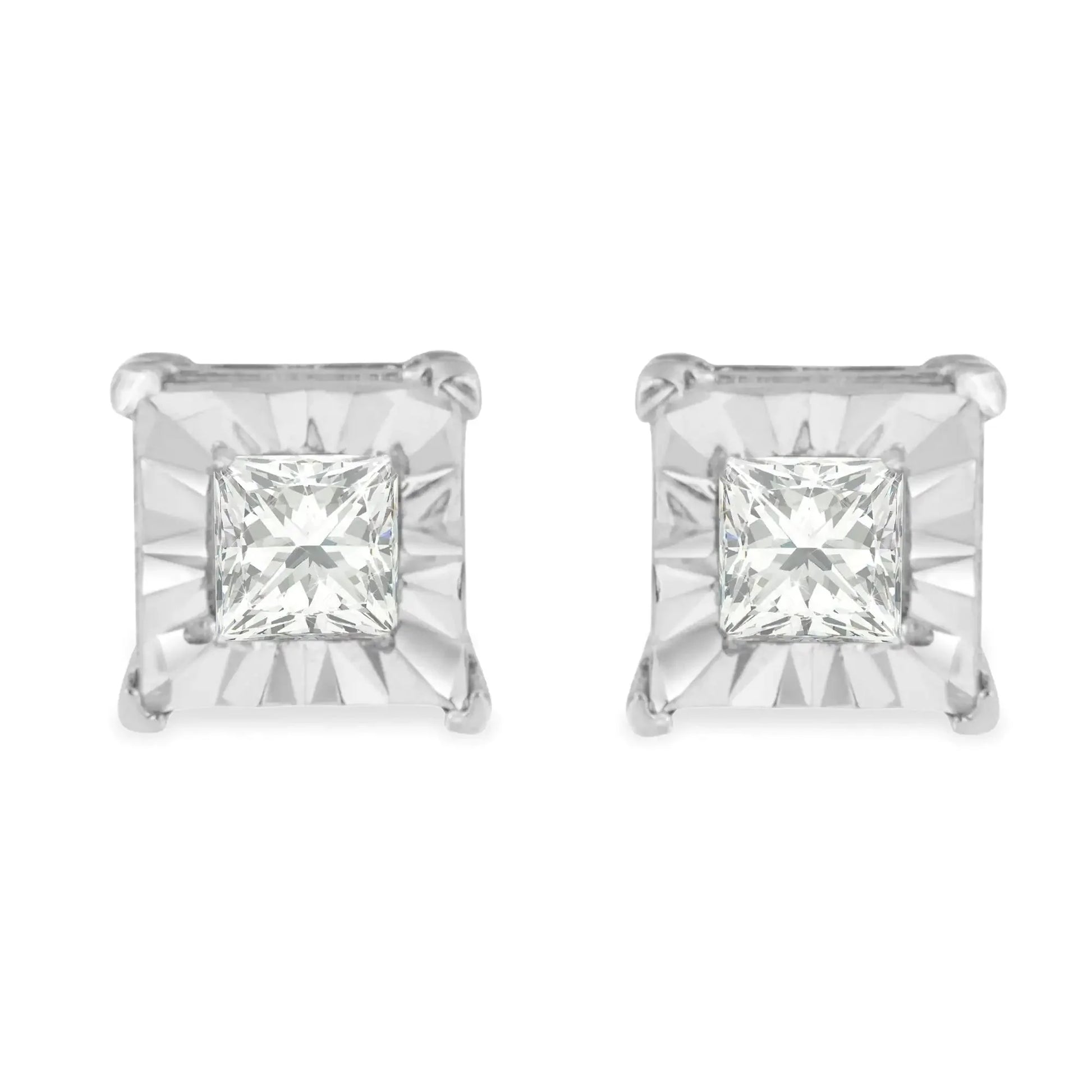 .925 Sterling Silver 1/4 Cttw Princess-Cut Square Near Colorless Diamond Solitaire Miracle-Plate Stud Earrings (H-I Color, I2-I3 Clarity)