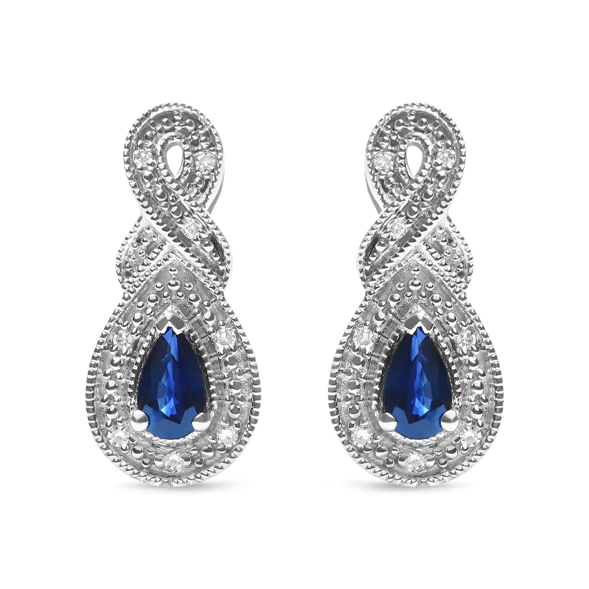 .925 Sterling Silver 4.5 x 3mm Pear Sapphire Gemstone and Diamond Accent Infinity Drop Stud Earrings (H-I Color, SI1-SI2 Clarity)
