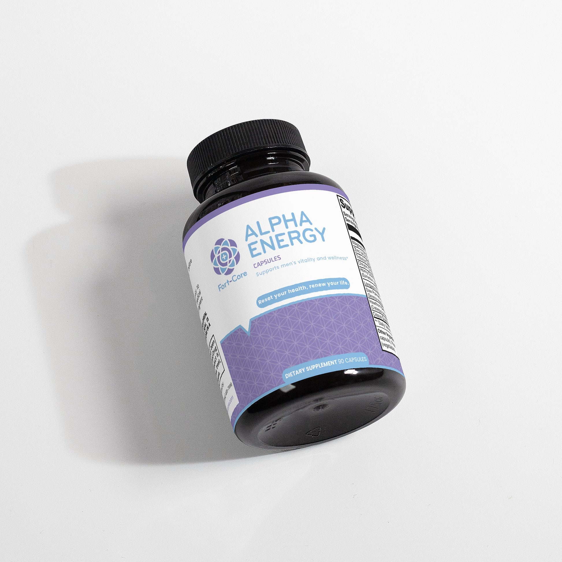 Alpha Energy by Fort-Core Support Men's Vitality and Wellness: Our carefully crafted dietary supplement is designed to promote men's health and well-being without containing testosterone. Formulated with a blend of key nutrients including magnesium, zinc, tribulus terrestris, chysin, horny goat weed, longjack, saw palmetto berries, hawthorn berries, and cissus quadrangularis, our product supports various aspects of men's health. *