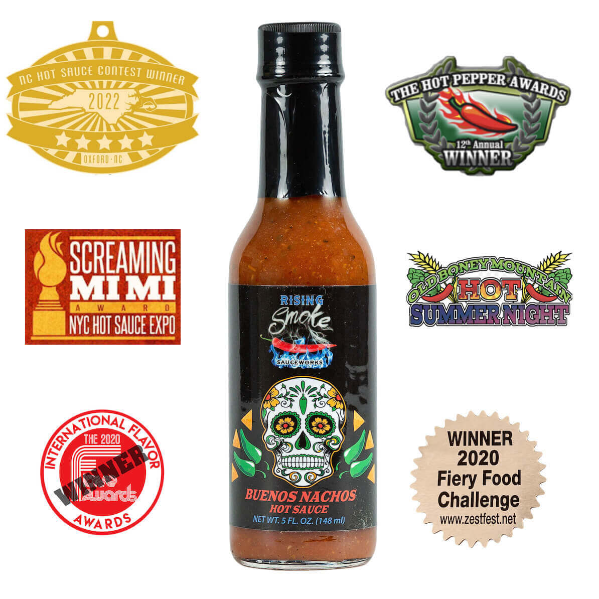 Buenos Nachos is our friendliest sauce, meant for everyone! Crafted with fire-roasted jalapeños, smoky chipotle peppers, cumin, and roasted red peppers, it delivers a delicious twist on traditional taco sauce. Say goodbye to artificial taco seasonings and embrace the all-natural goodness of our sauce. Just mix it with your meat for an authentic and flavorful Mexican-inspired meal.