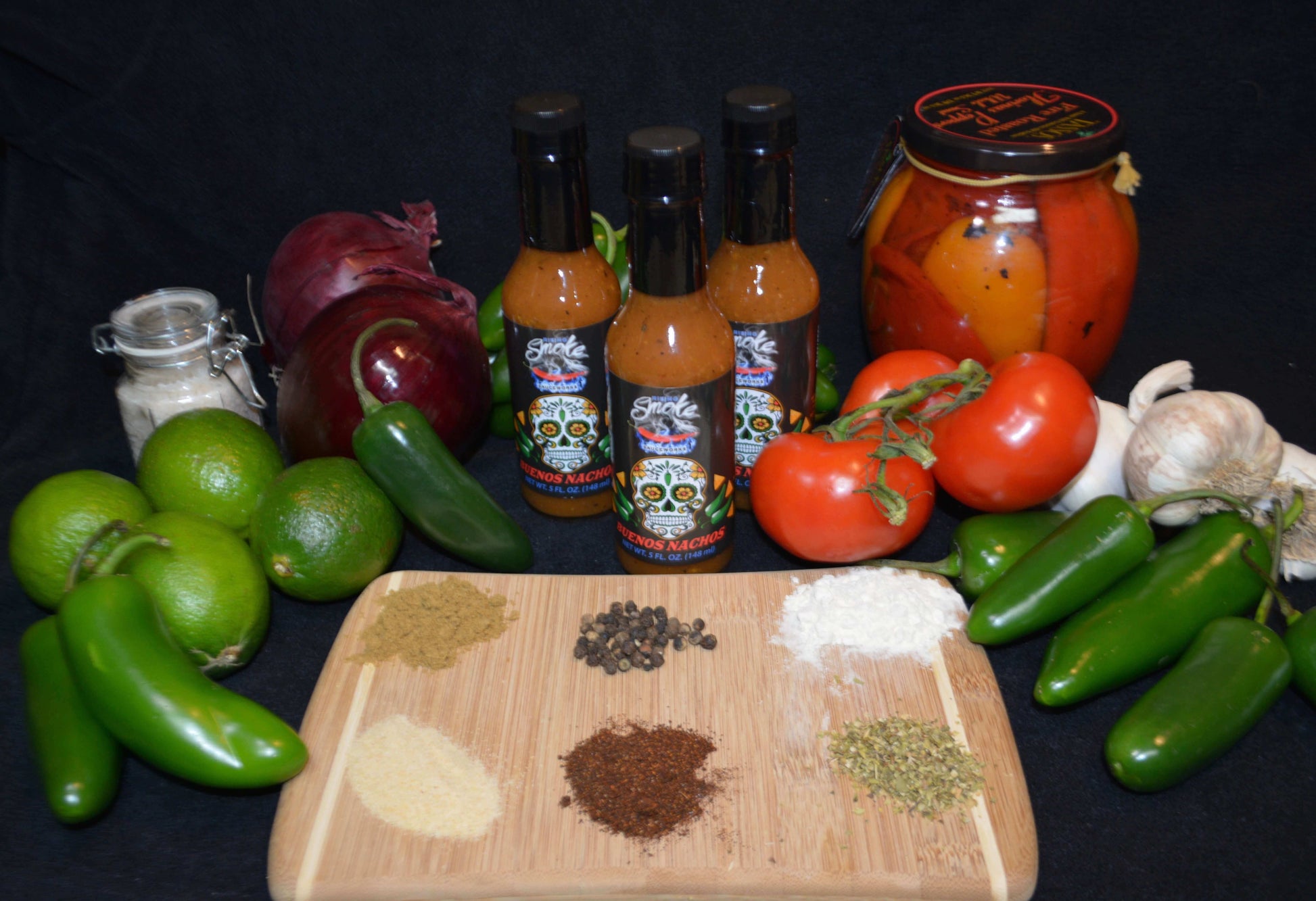Ingredients: Water, Vinegar, Fire Roasted Jalapeño Peppers, Tomatoes, Chipotle Pepper, Onion, Roasted Red Pepper, Garlic, Spices, Salt, Garlic Powder, Lime Juice, Onion Powder, Cayenne Pepper.