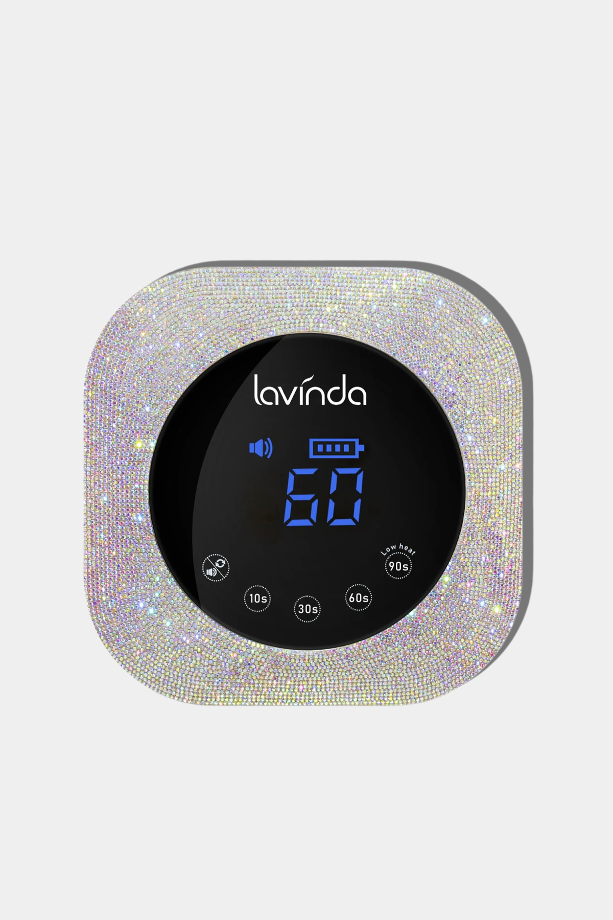 The Bling Icons. Level up your nail game with Lavinda’s Bling Lamp and Drill Bundle—built to dazzle and deliver. The Lavinda Wand Nail Drill packs a quiet 35,000 RPM motor and 10-hour cordless power, while the Lavinda Crown Nail Lamp offers even 54W curing with 30 LED/UV beads and a low-heat mode. Both feature crystal finishes, smart features, and cordless freedom. Performance and sparkle, all in one set.