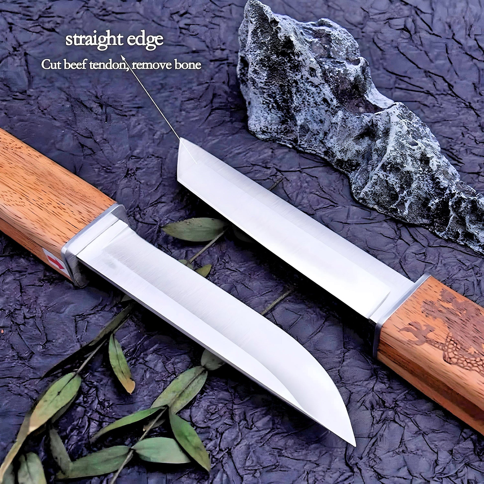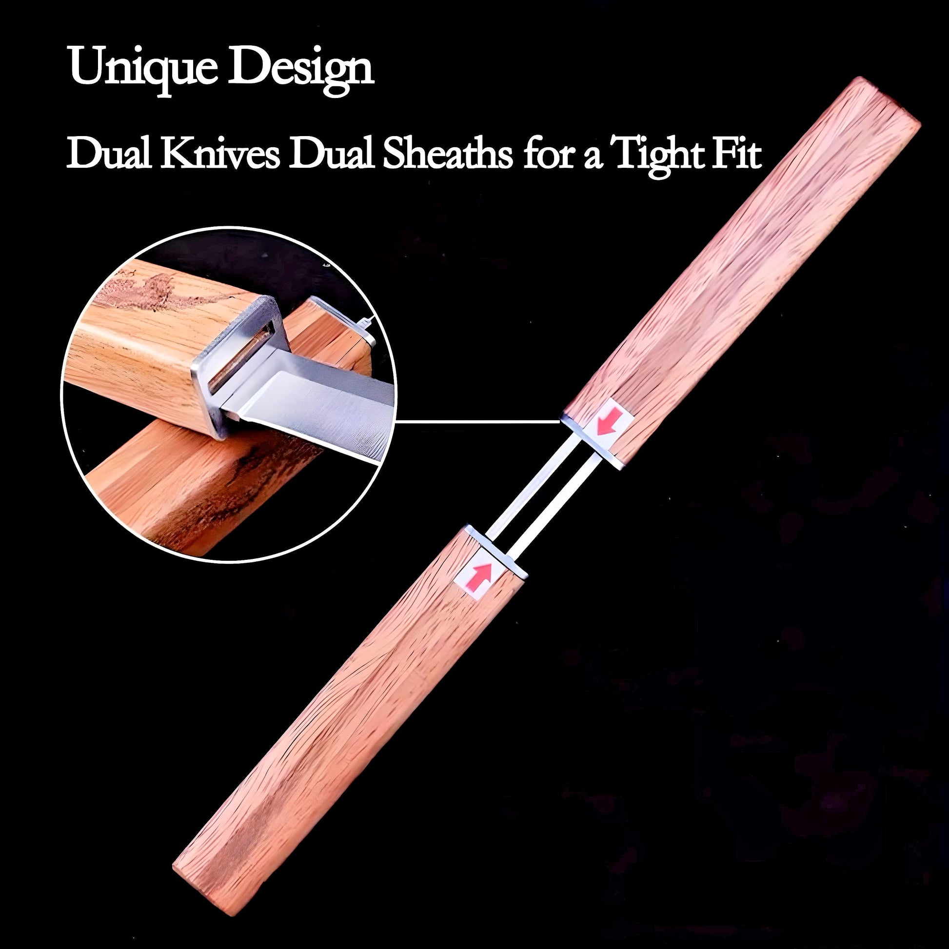 DragoPhoenix Duo, a handcrafted double-edged knife set designed for versatility, durability, and elegance. Whether you're slicing, peeling, or cutting with precision, this stainless steel knife set offers unparalleled sharpness and ergonomic comfort, making it the ultimate companion for your kitchen and outdoor adventures.