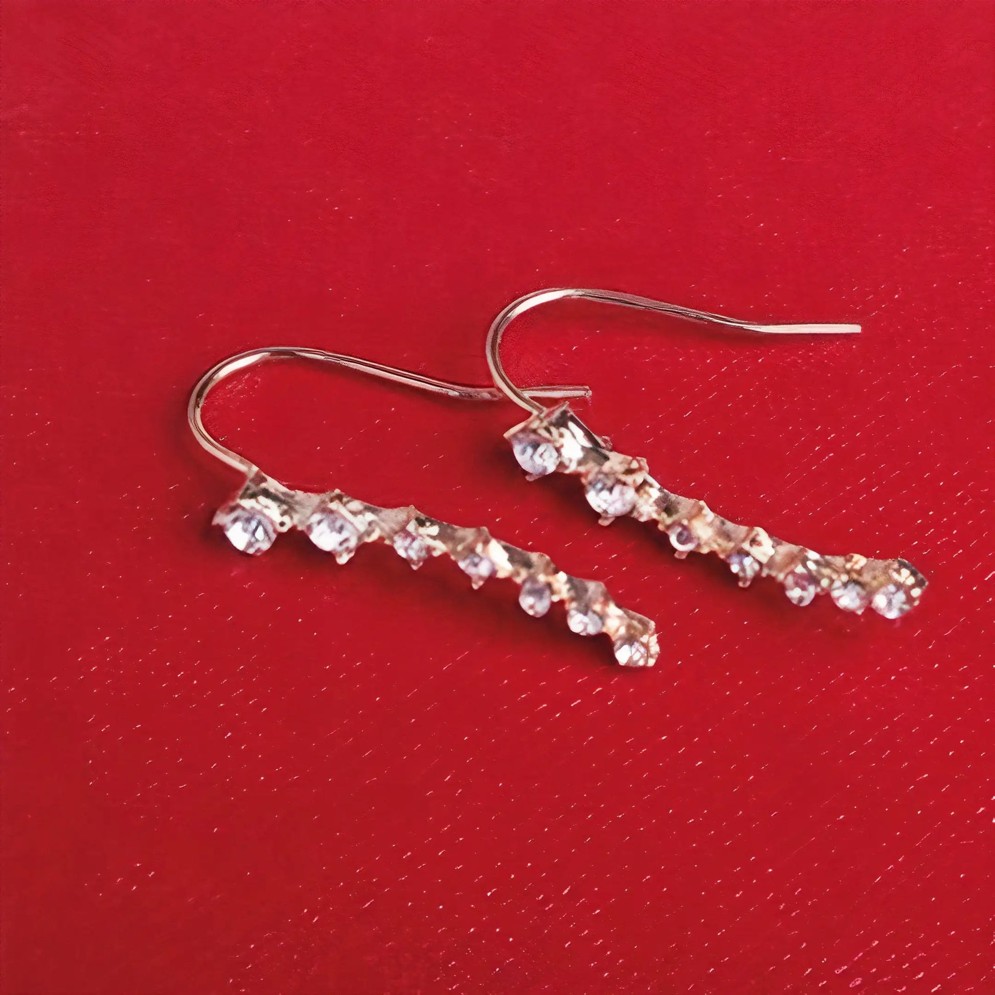 Unique extended earring with 7 diamonds inlaid with rhinestones