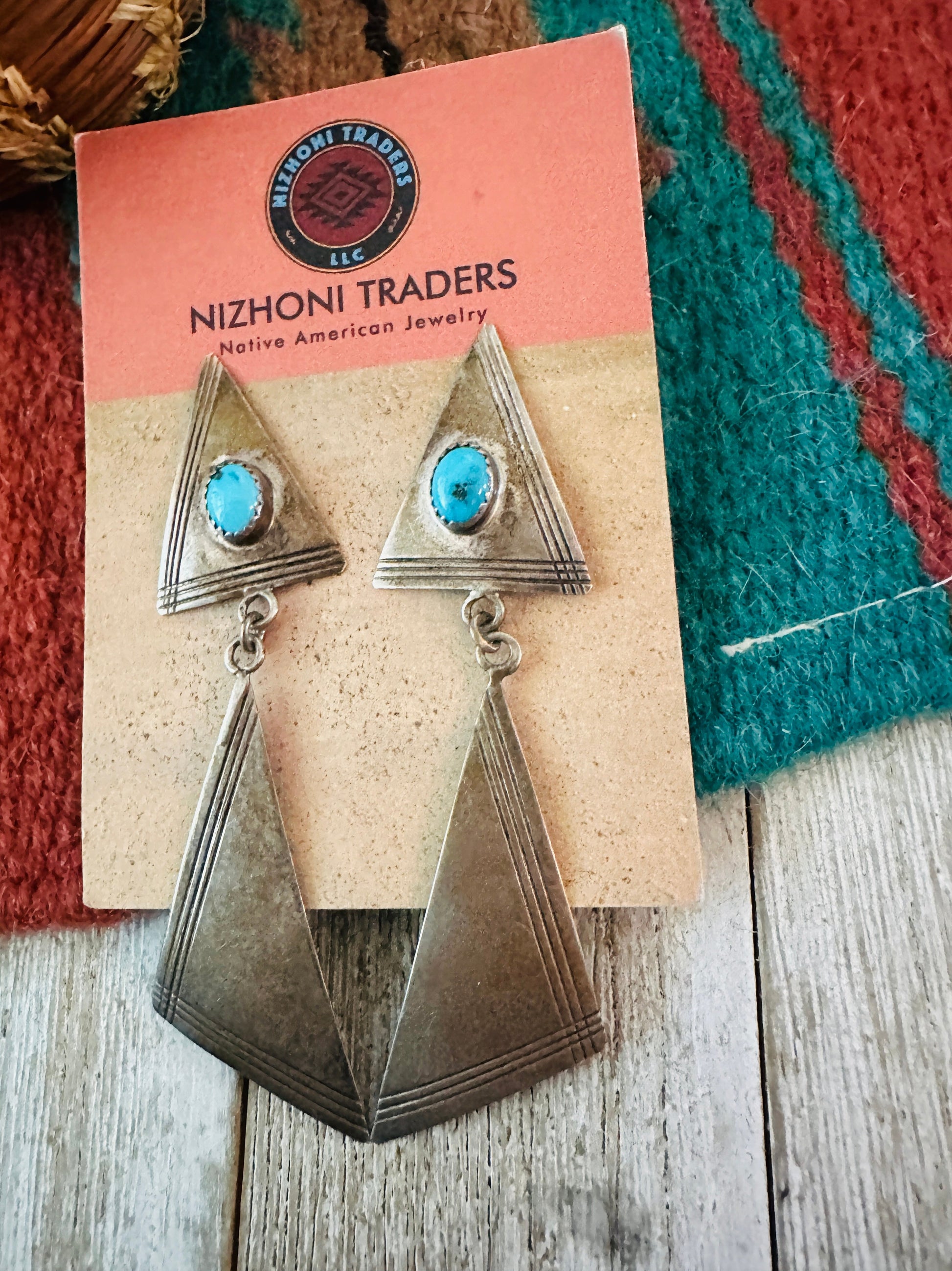 Handcrafted Old Pawn Sterling Silver & Turquoise Dangle Earrings