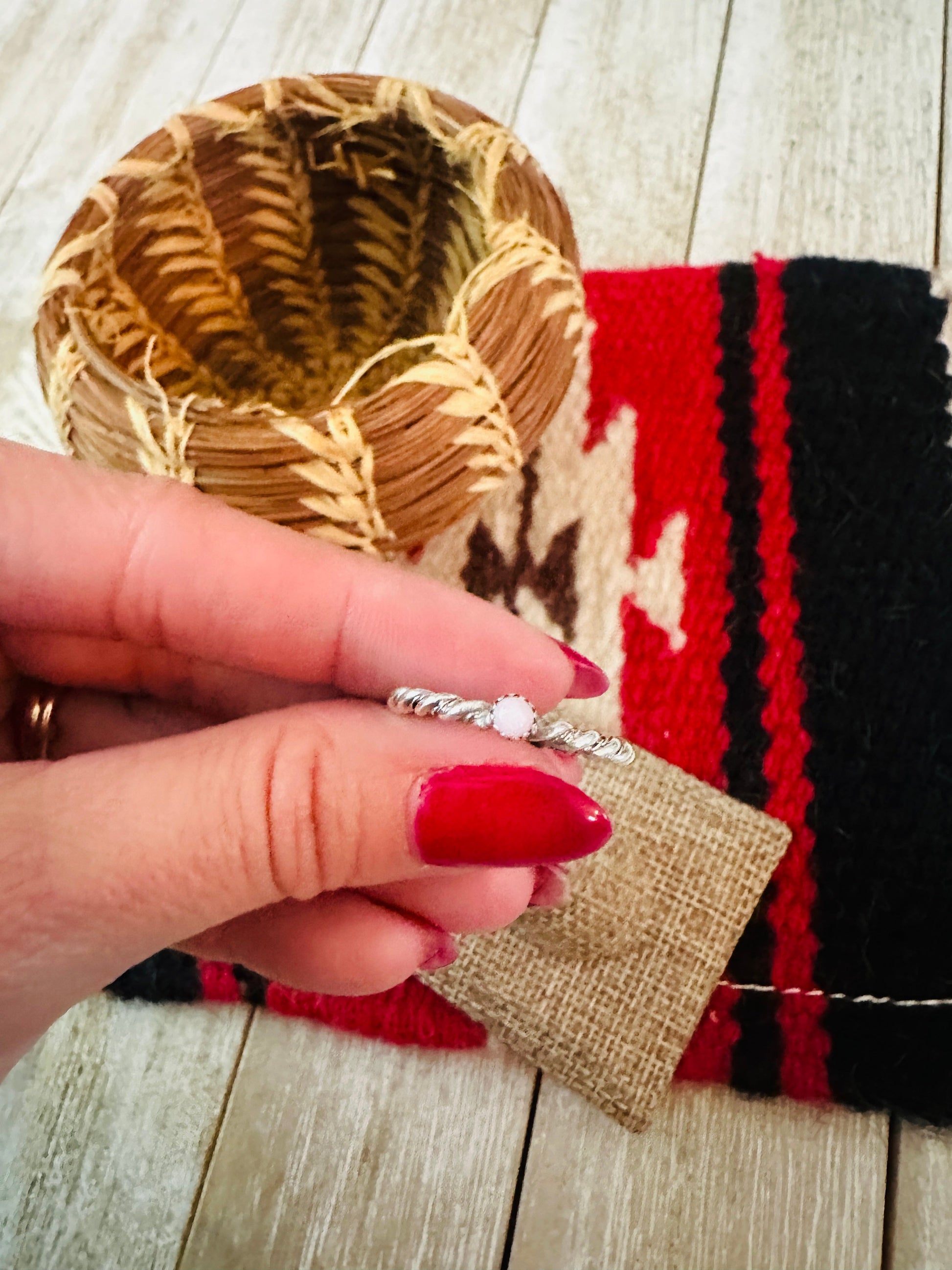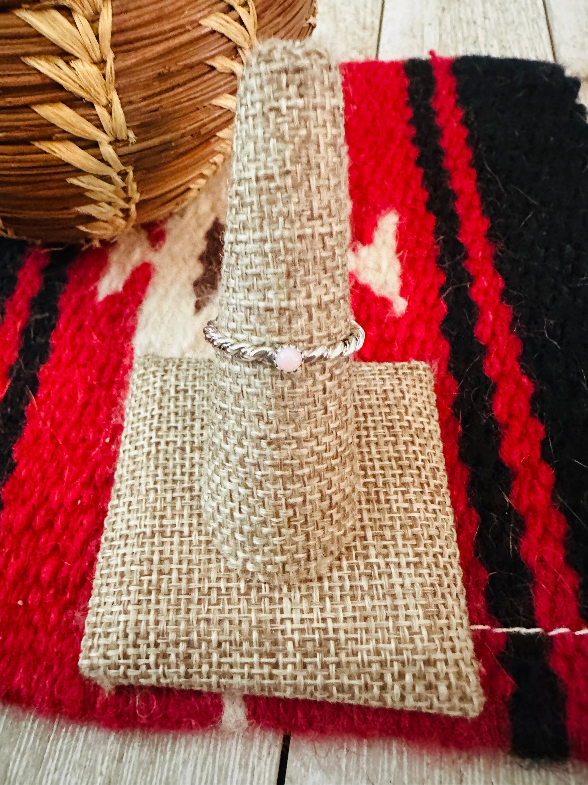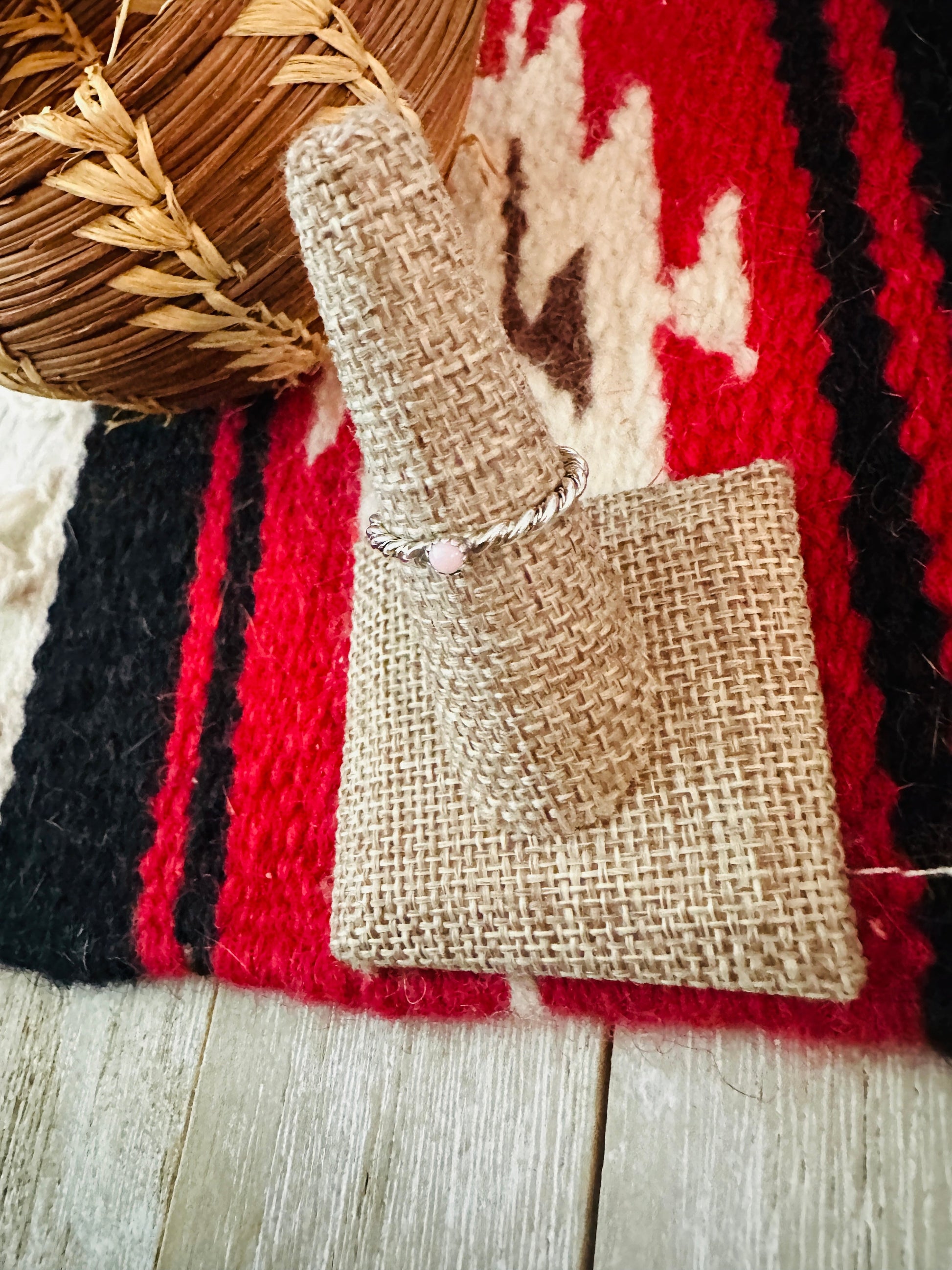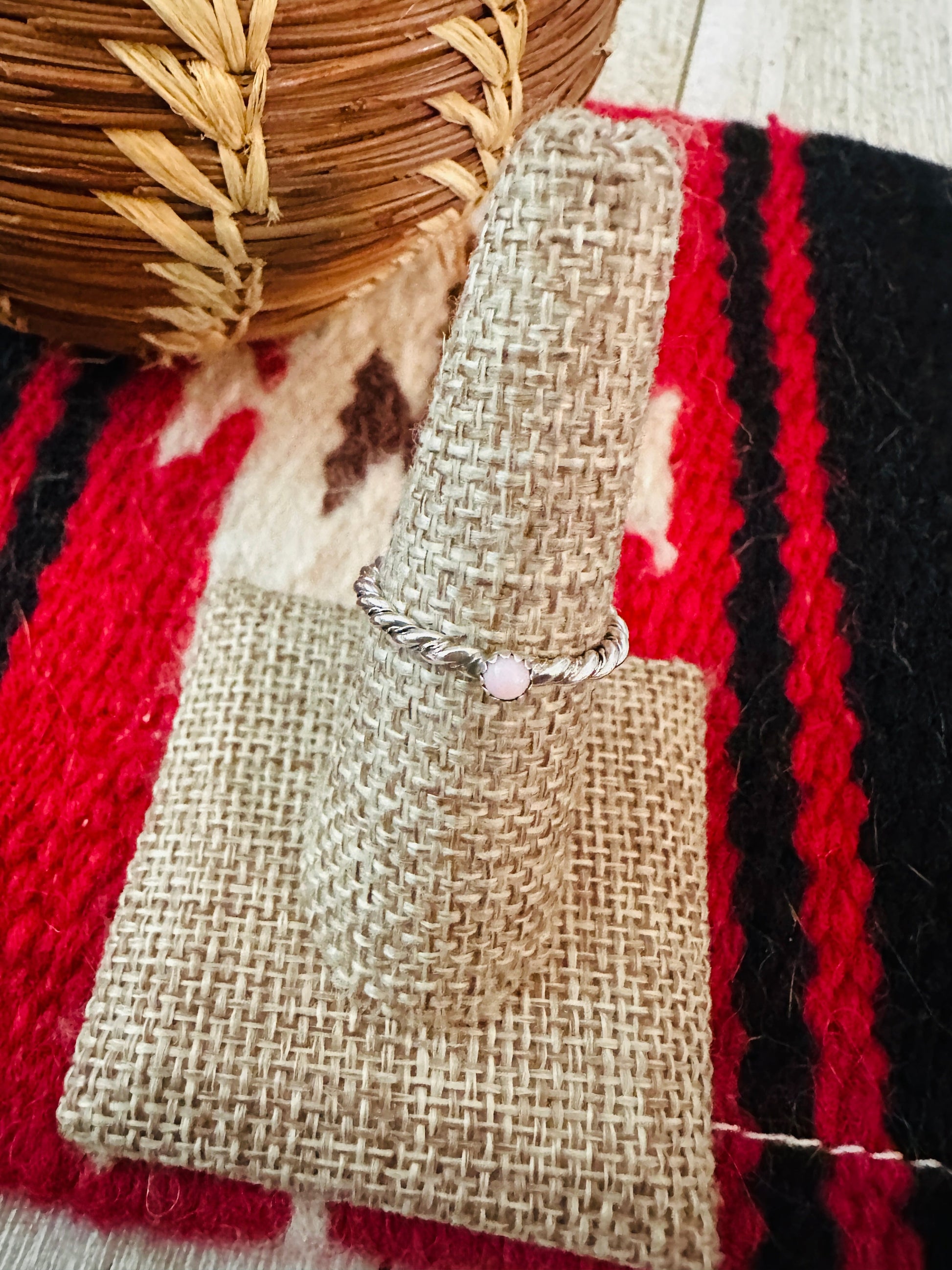 Beautiful Handcrafted Sterling Silver and Queen Pink Conch Shell Twisted Band Ring. Measures 1/8 of an inch wide.