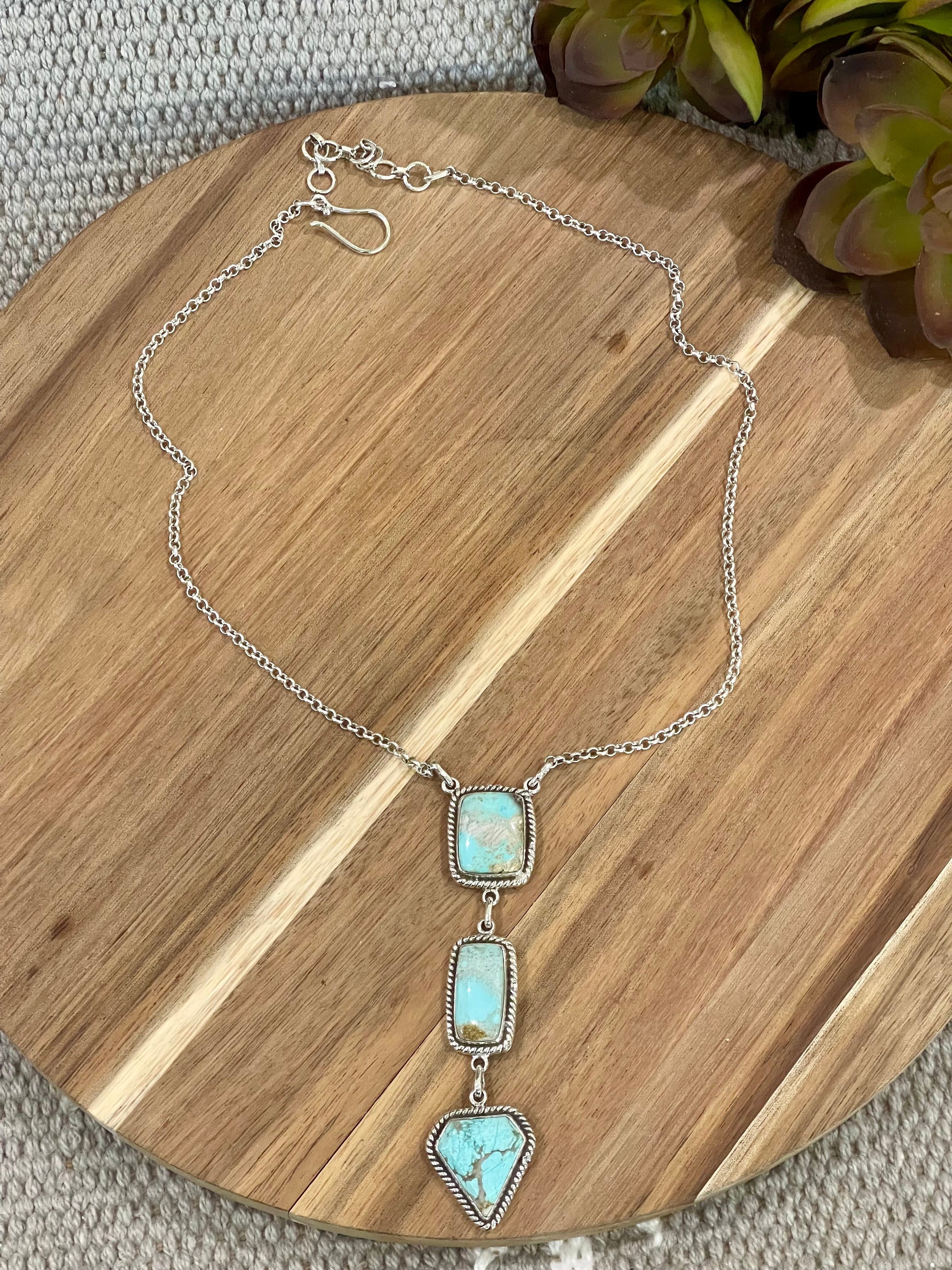 Handmade Sterling Silver & Carico Lake Turquoise Drop Necklace