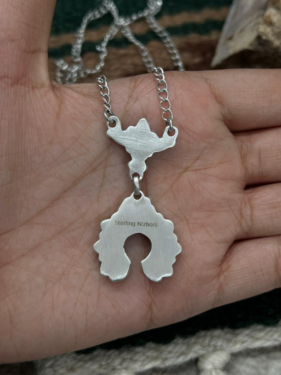 Handmade Sterling Silver Kingman Turquoise Naja Necklace "Signed Nizhoni"