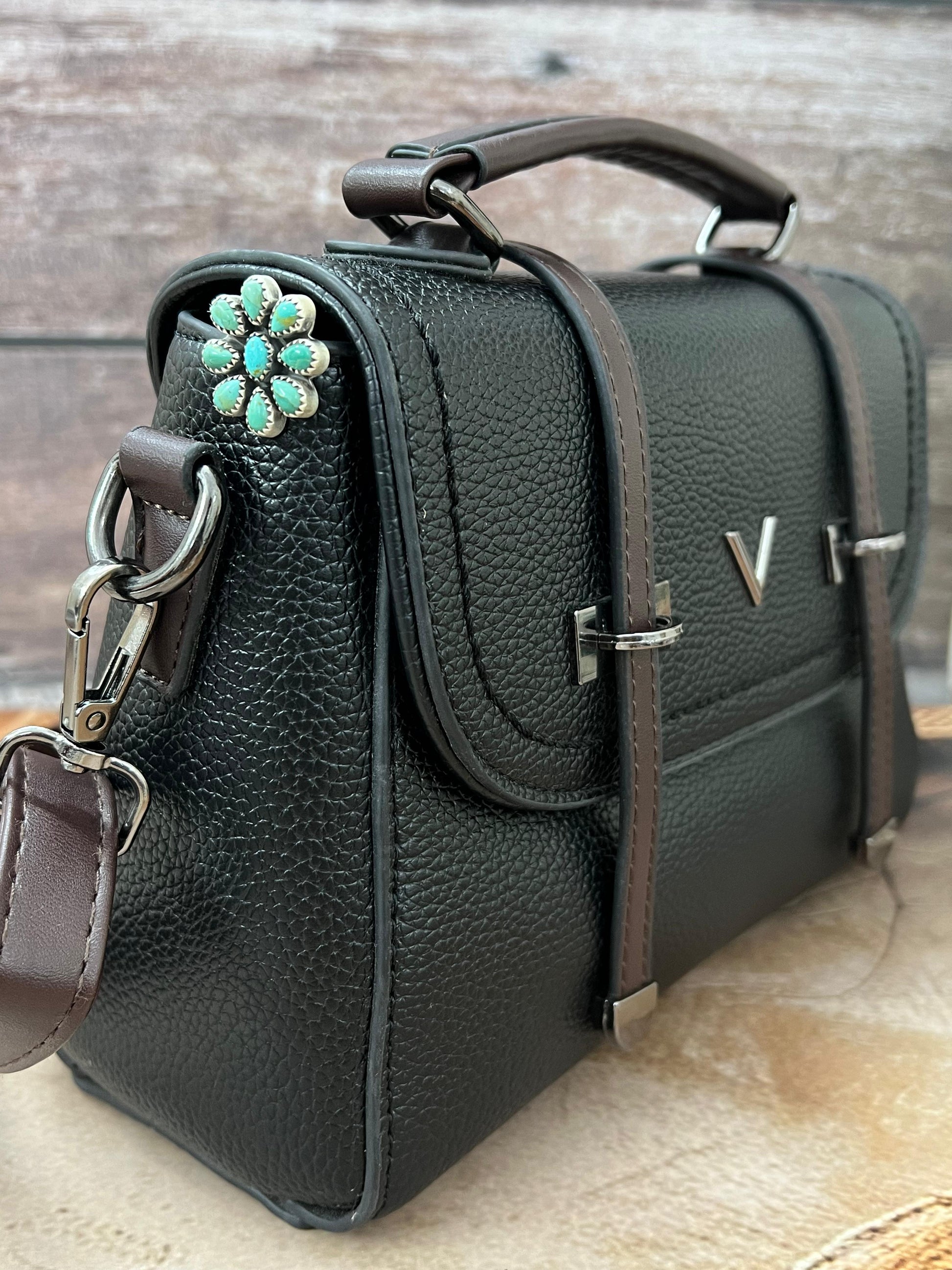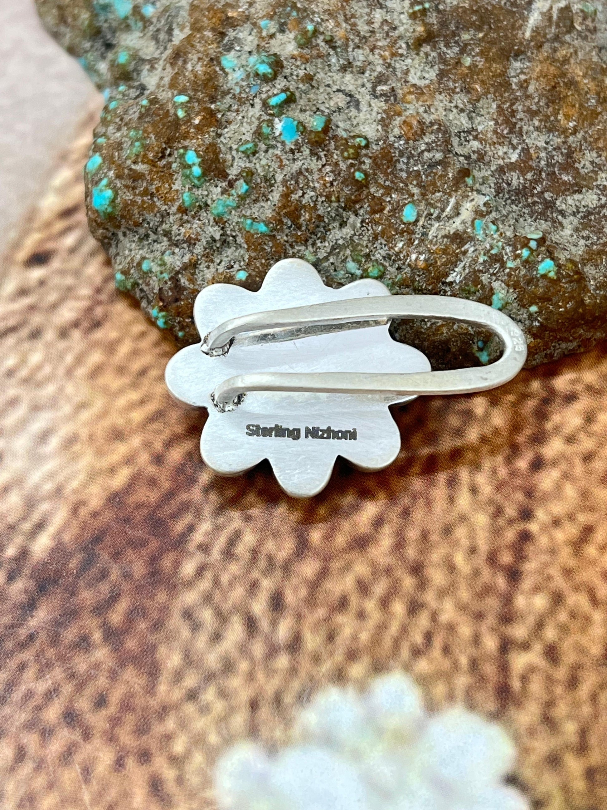 Handmade Sterling Silver Kingman Turquoise Purse Key Clip with Signed Nizhoni