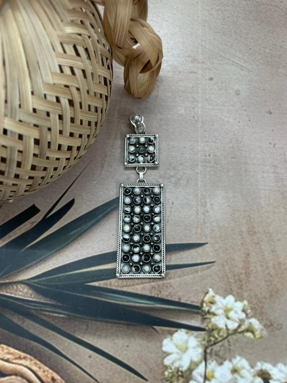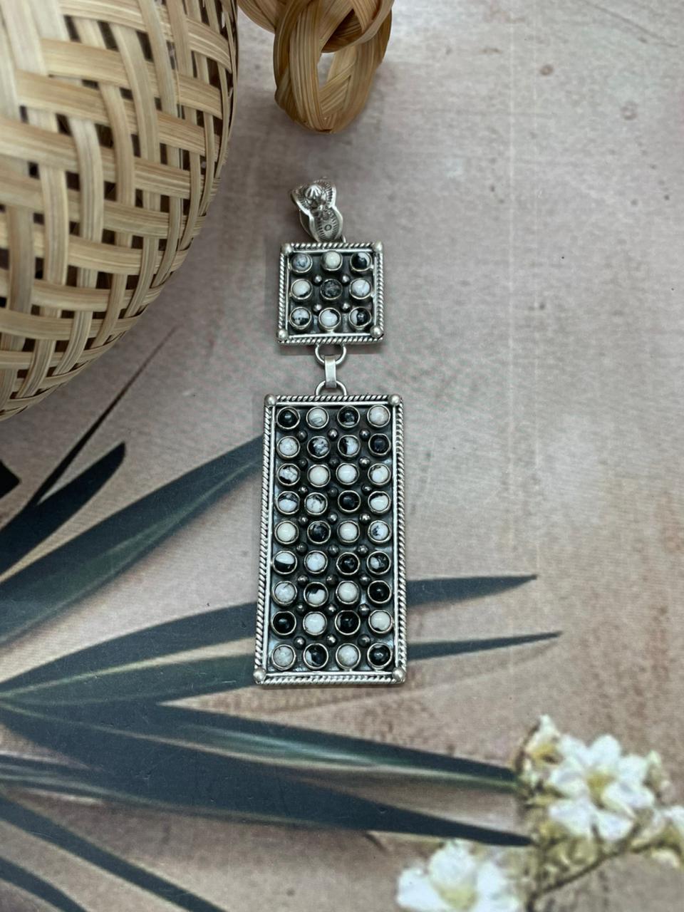Beautiful Sterling Silver White Buffalo Pendant Measures length 4 1/8" and width 1 1/8".