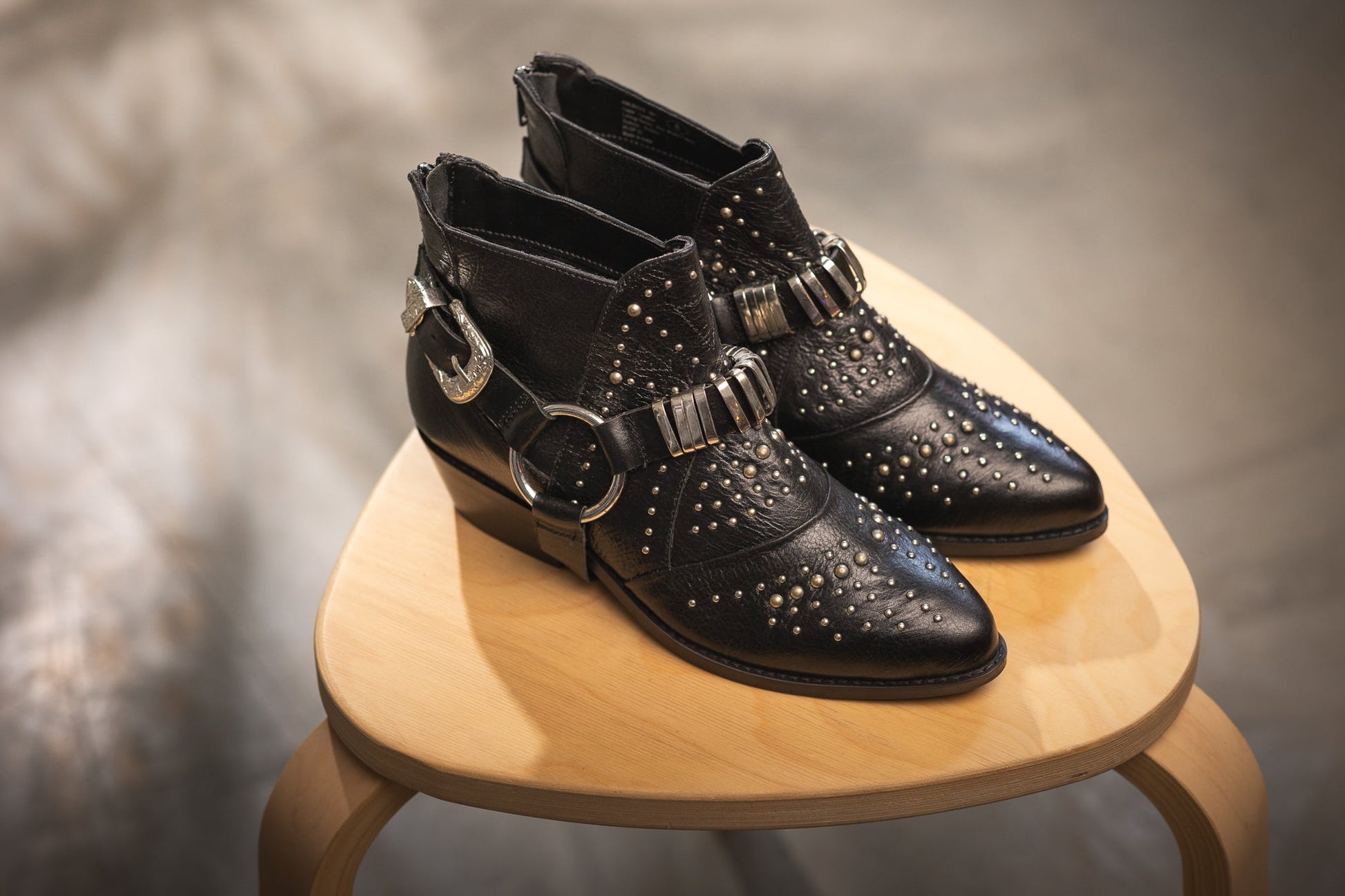 Faux leather upper with stud and harness detail