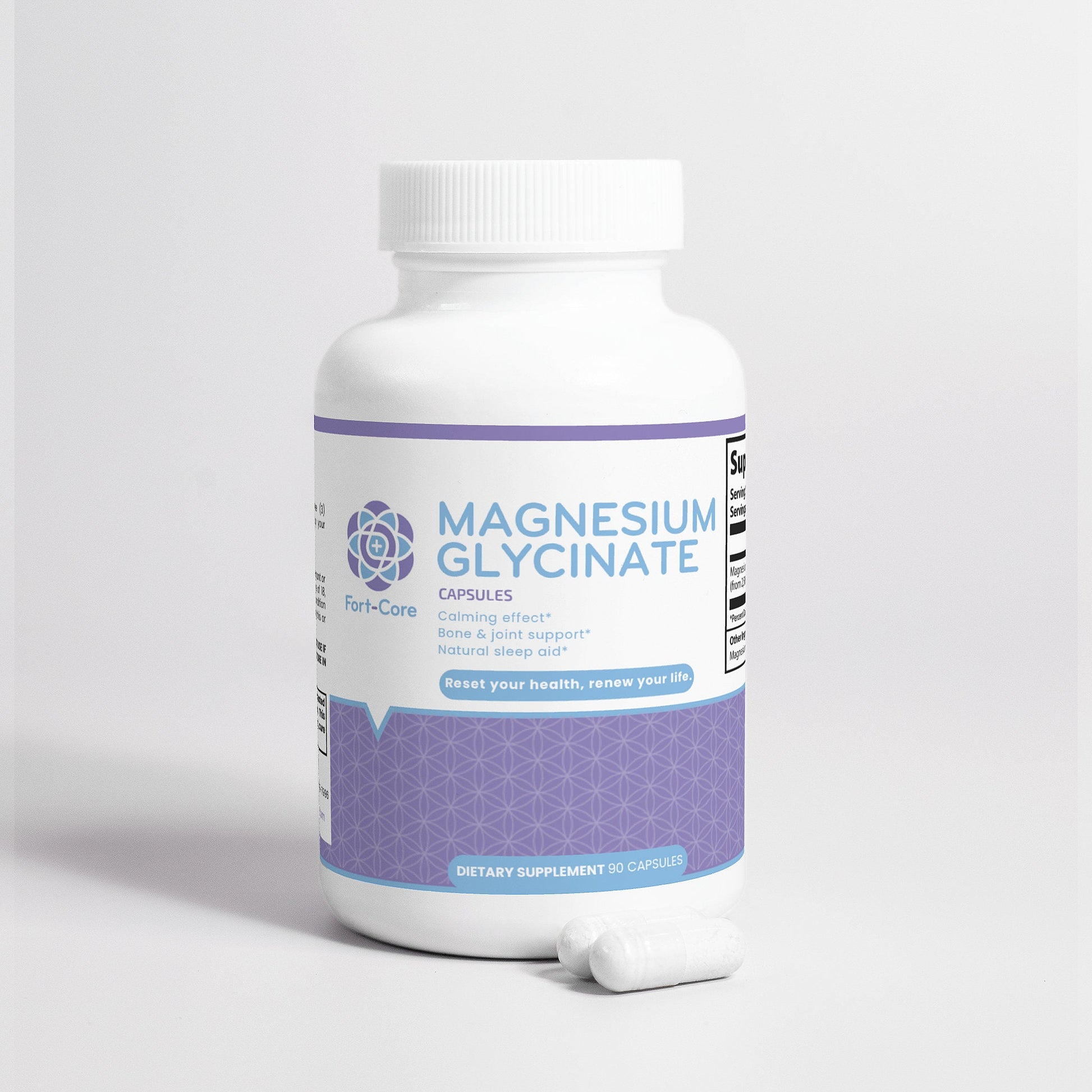 In addition, magnesium glycinate benefits the body by reducing cellular stress, which in turn can help support normal blood pressure, and support overall wellbeing.*