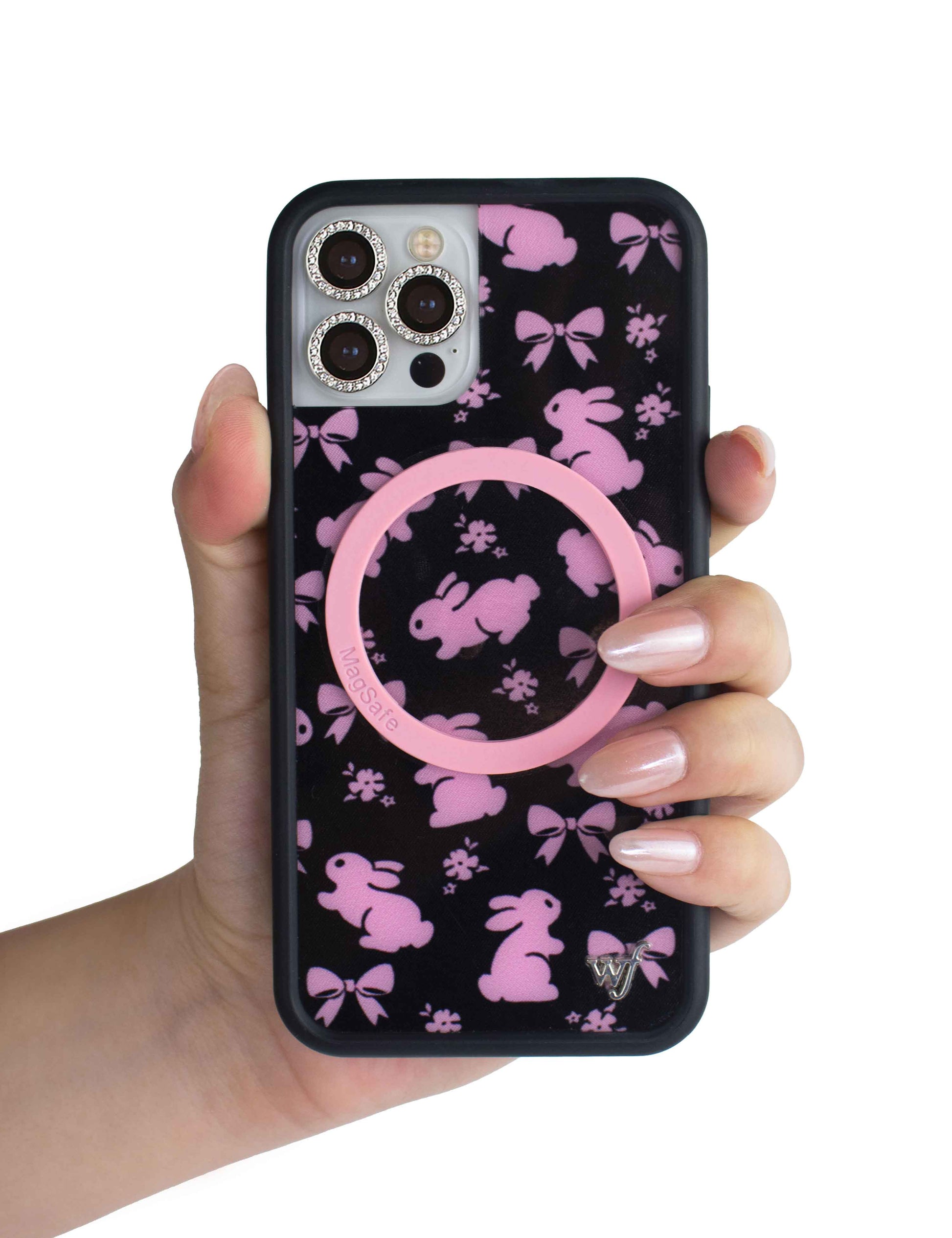Upgrade the styles you love to wireless charging with our MagSafe® Magnetic Rings (3 pack). Pick from white, pink, and black to attach to the back of your phone case for easier charging. These will not permanently adhere to your Wildflower case if you do not want them to. Compatible with iPhone 12 or newer models and all MagSafe accessories and chargers.