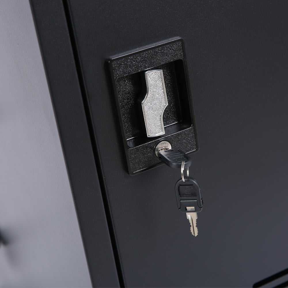 LOCKING & SAFETY: charging cart with lock & key for the front and back door, will Protect your devices when it's in working or you are moving the cart. And 2 locking caster wheels will keep cart in place.