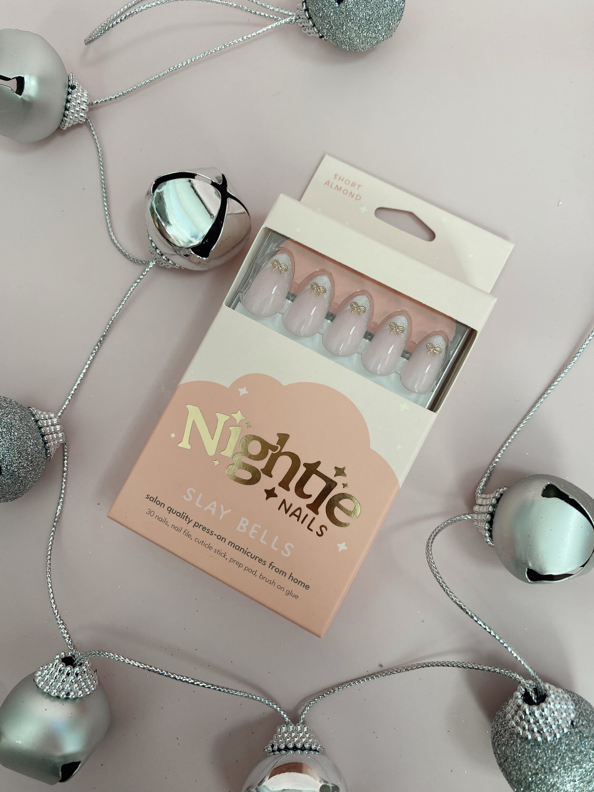 Get ready to slay the holiday season with Slay Bells! These nails feature sparkling silver french tips and a cute gold bow, making them the perfect accessory for any festive occasion. Bring some extra sparkle to your nails and rock the holidays in style!
