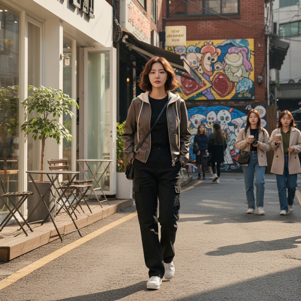 Stay versatile with the removable knit hood, ideal for changing weather. Perfect for daily wear, this jacket adapts from casual outings to cooler evenings, offering both style and practicality in brown or black.