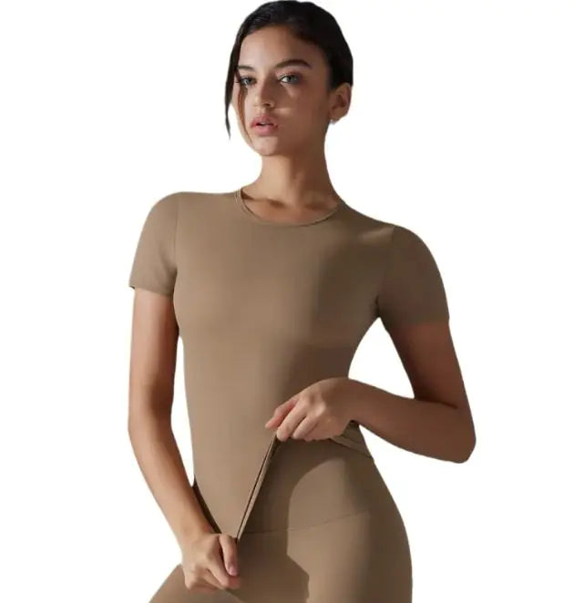 - Sleek Solid Color Design: The minimalist solid color design makes it a timeless wardrobe essential. Easy to pair with leggings, shorts, or joggers, this t-shirt suits a variety of styles and occasions.