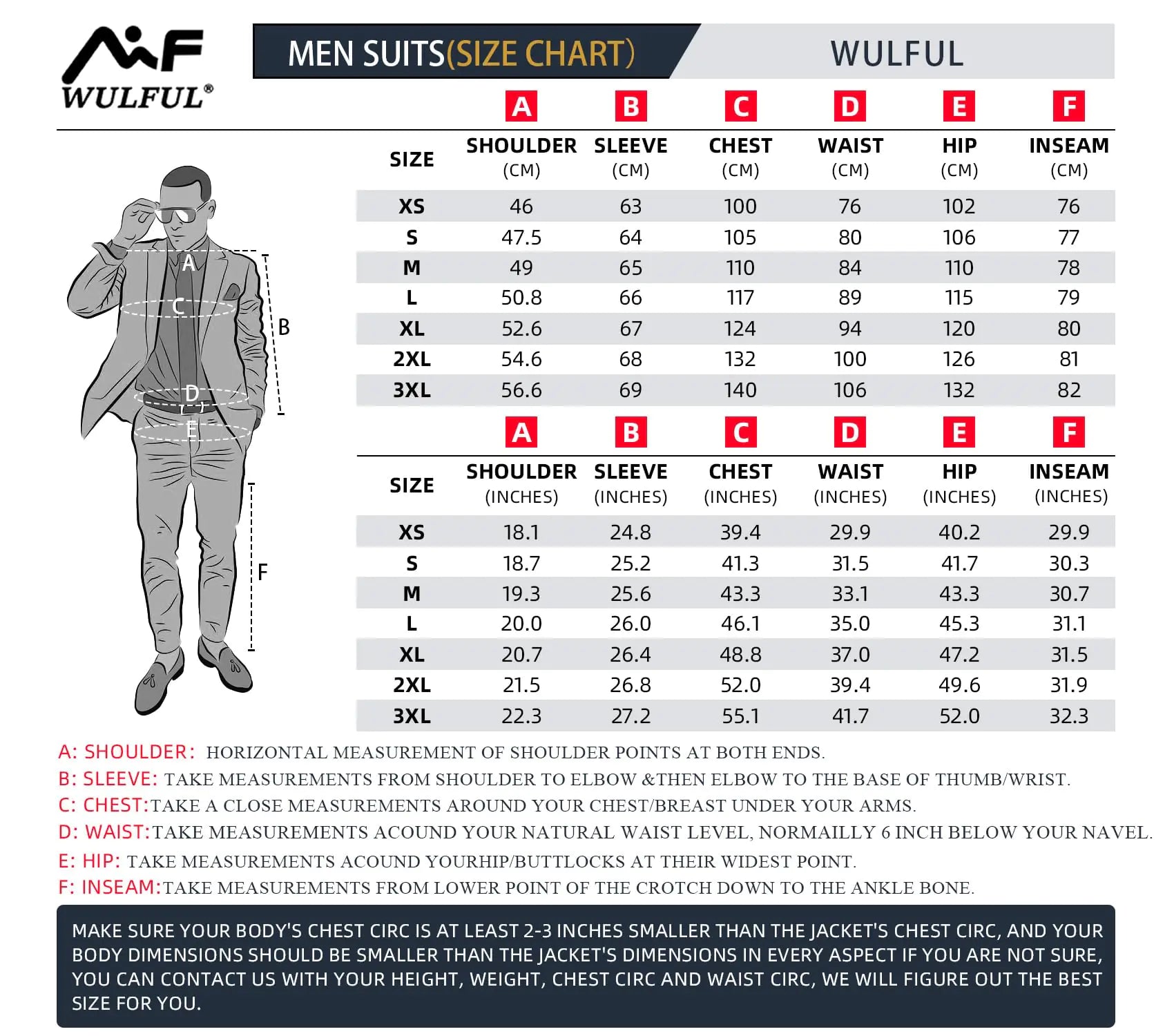 WULFUL Men's 3 Piece Slim Fit Suit Set Two Button Blazer Jacket Vest Pants Tuxedo Set for Party, Wedding and Business